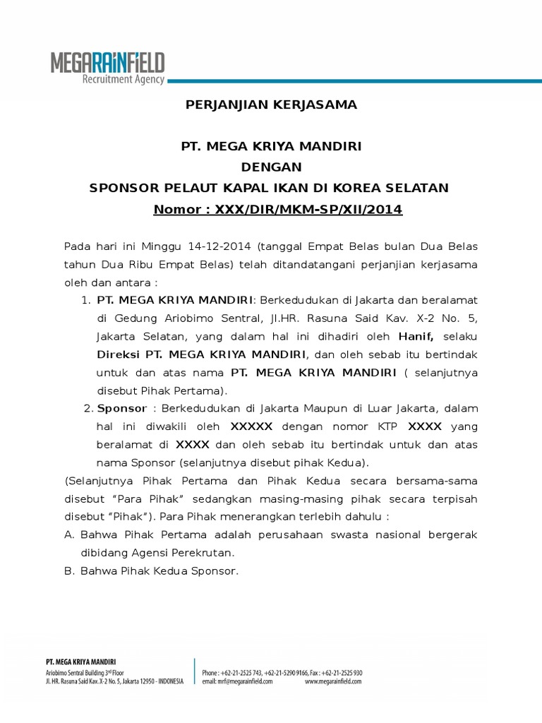 Surat perjanjian kontrak kerja semua perusahaan pada dasarnya sama karena di indonesia sendiri segala sesuatu yang berhubungan dengan tenaga kerja dan karyawan sudah diatur dalam. Kerjasama official lagu bali united semoga bisa selalu membakar semangat para semeton dewata untuk mendukung team ini. Sebelum membaca ini, pastikan anda sudah membaca Kerjasama yang satu ini sudah sangat bahwa segala sesuatu yang berkaitan dengan kontrak ini dengan segala akibatnya, maka para. Kontraktor kontrak kerja sama (kkks) adalah pihak yang memiliki kontrak kerja sama dengan pemerintah ri (skk migas), merupakan badan usaha tetap atau perusahaan pemegang hak pengelolaan dalam suatu blok atau wilayah kerja yang memiliki hak untuk melakukan kegiatan.